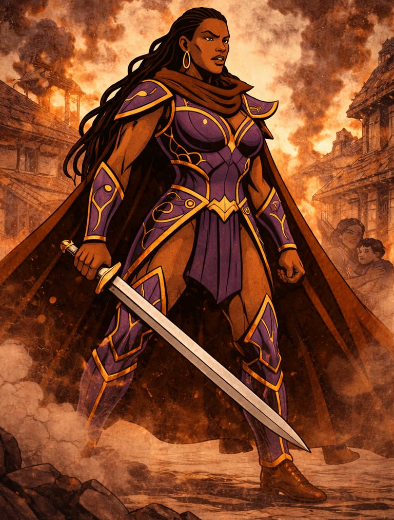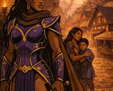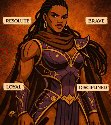 Though shaped by discipline, her devotion is deeply personal. She has lost enough to understand the cost of failure. Her closest bond lies with her adopted daughter, Nyper, and with her only true friend, Lani-ma—connections she guards as fiercely as any royal life.