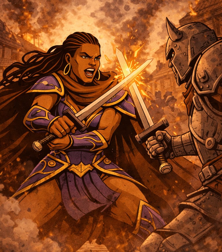 Born of the Trigon tribe and dismissed early for what she was not allowed to be, Murrock learned quickly that permission was a luxury she would never receive. Left-handed, female, and unyielding, she entered the warrior selection trials without invitation and earned her place through sheer capability.
