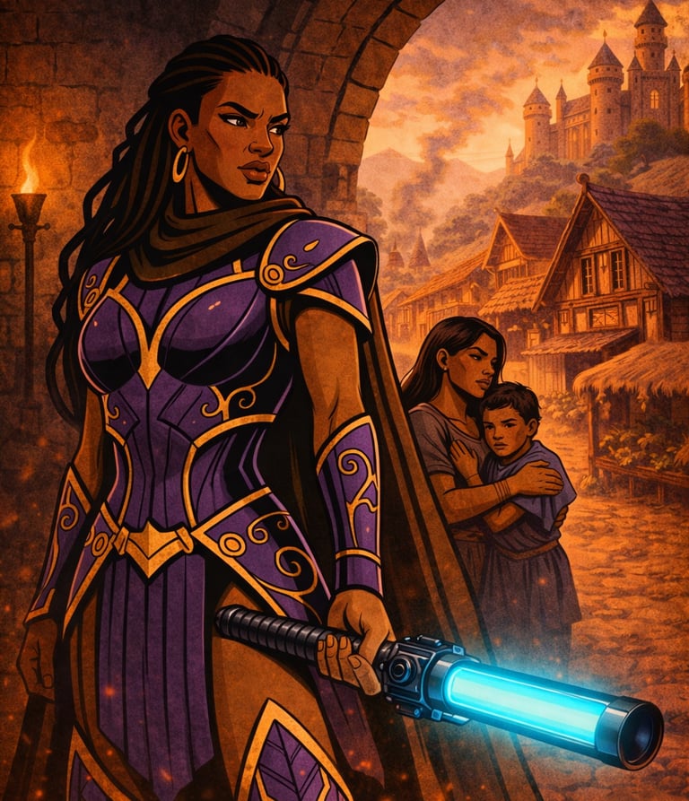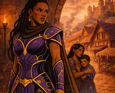 Though shaped by discipline, her devotion is deeply personal. She has lost enough to understand the cost of failure. Her closest bond lies with her adopted daughter, Nyper, and with her only true friend, Lani-ma—connections she guards as fiercely as any royal life.