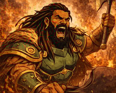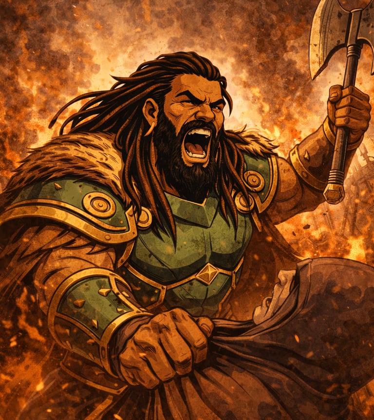 His heavy beard and imposing stance make him unmistakable on the battlefield. He does not blend in, nor does he wish to. Presence, to Bakko, is a weapon.
