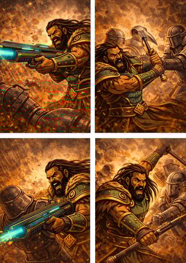 Broad-shouldered and powerfully built, Bakko wears his armour as a declaration. Every plate, every scar, every emblem is meant to be seen.