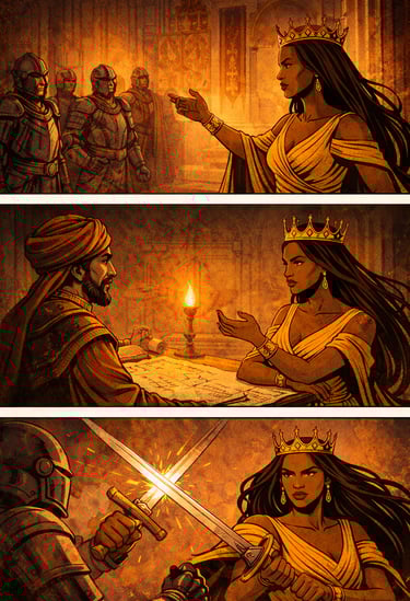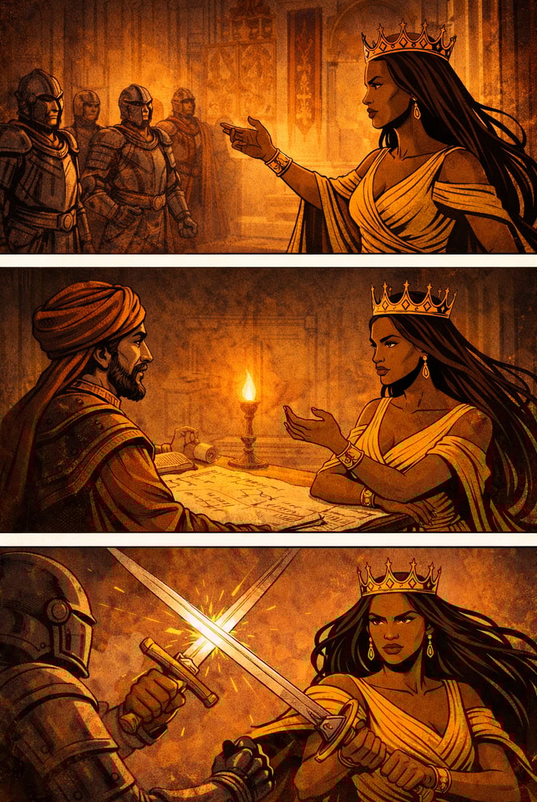 Exile changed her. The softness of court life gave way to vigilance, and warmth learned to coexist with readiness. She is capable of tenderness and ferocity in the same breath—never confusing kindness for surrender.