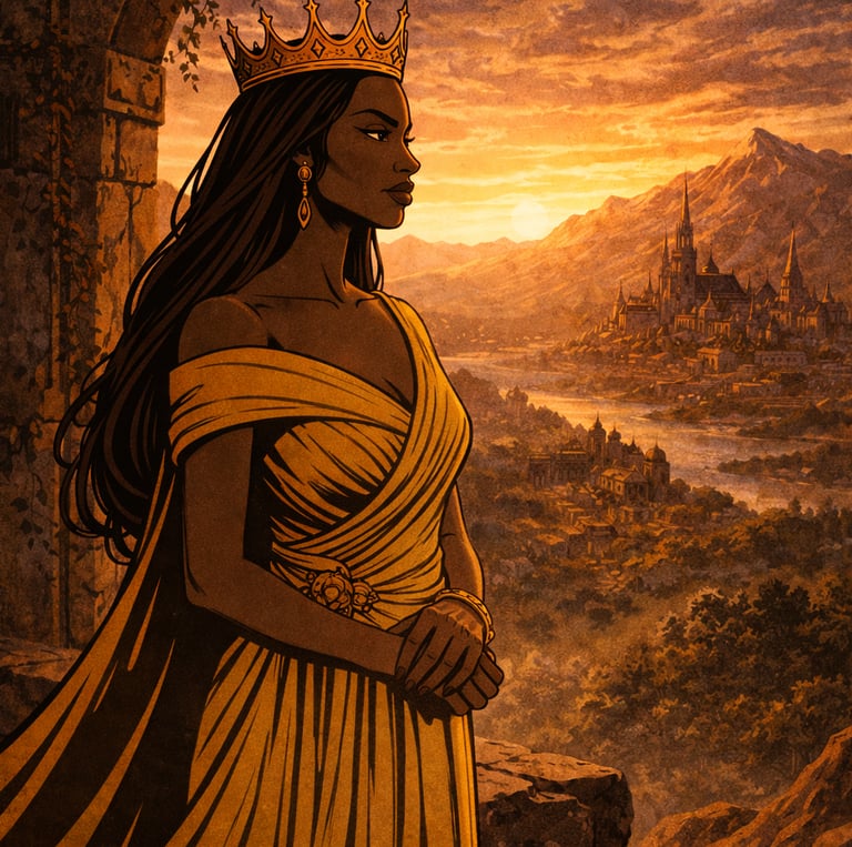 Once Empress of Nu Oarren, Subira’s reign was interrupted not by ambition, but by necessity. Forced into exile during the unraveling of prophecy, she became Queen away from her throne—crowned by survival rather than ceremony.