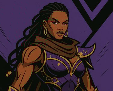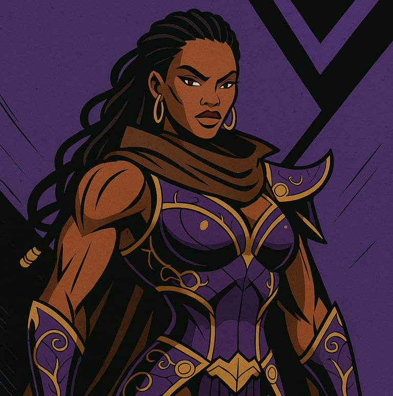 Though shaped by discipline, her devotion is deeply personal. She has lost enough to understand the cost of failure. Her closest bond lies with her adopted daughter, Nyper, and with her only true friend, Lani-ma—connections she guards as fiercely as any royal life.