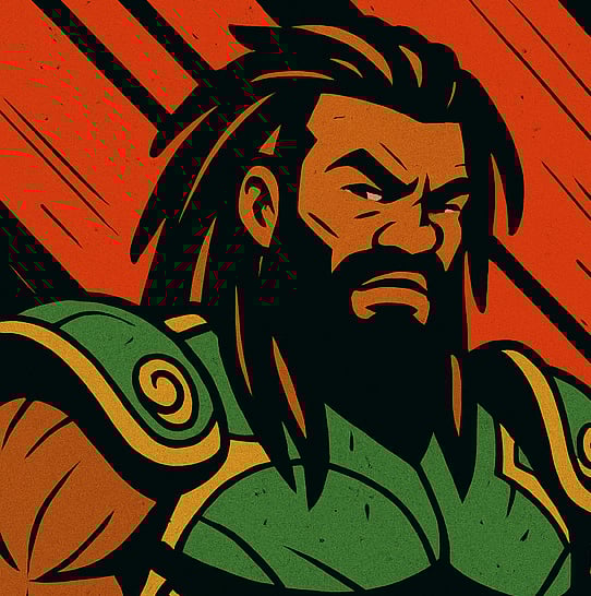 Broad-shouldered and powerfully built, Bakko wears his armour as a declaration. Every plate, every scar, every emblem is meant to be seen.