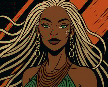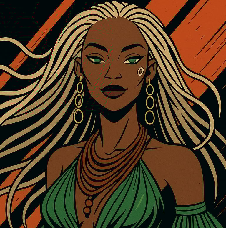 Chosen at seven lucas from the kinsmen of the Camu tribe by the Superior Guardians of the Fold of Aluke, Aja Daktari was shaped from childhood into vision and service. Gifted with sight beyond time, she was entrusted with guarding queens, guiding bloodlines, and protecting the future of Nu Oarren itself.