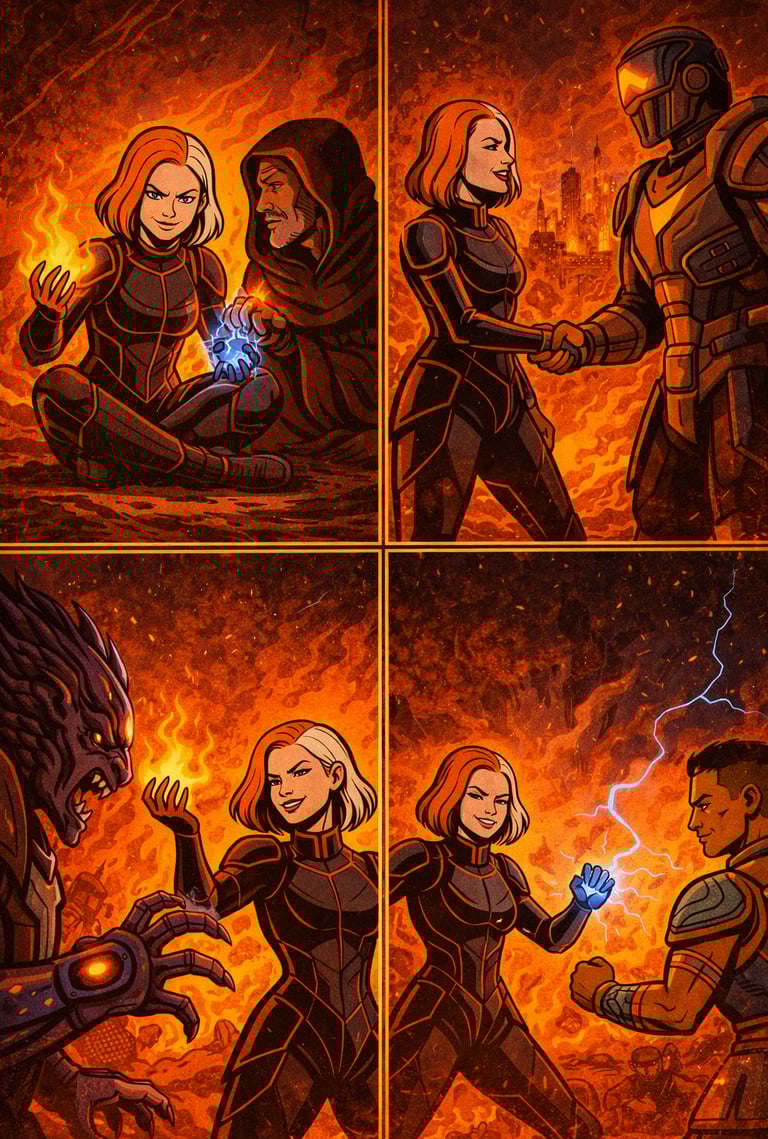 Raised within the shifting safety of exile, Sundella learned early how to read a room before choosing where to stand. She grew up around strong personalities, heightened abilities and unspoken danger; absorbing far more than she revealed.